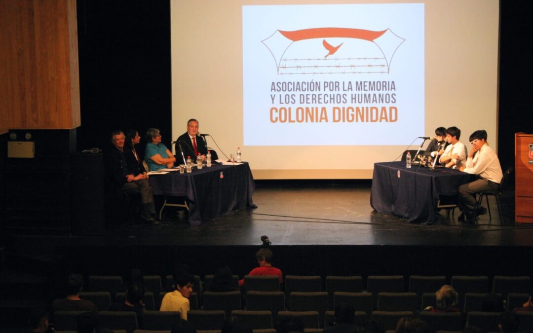 El martes 10 de diciembre, en el marco del Día Internacional de los Derechos Humanos, nuestra asociación participó en un conversatorio realizado en el Instituto Nacional, centrado en la historia y los crímenes cometidos en Colonia Dignidad. La actividad fue organizada por el profesor Pablo Fernández y se llevó a cabo en Centro de Extensión (CEINA) con la asistencia de aproximadamente 120 a 150 estudiantes. En el encuentro participaron diversos profesionales, entre ellos el abogado Winfried Hempel; la abogada Sylvana Mariangel, del Instituto Nacional de Derechos Humanos (INDH), José Aylwin, de la Fundación presidente de la Fundación Aylwin y por nuestra Asociación, Lelia Pérez Valdés.