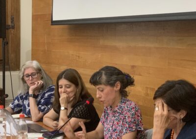 Por último, Margarita Romero, presidenta de la Asociación por la Memoria y los Derechos Humanos Colonia Dignidad, expuso cómo la sociedad civil utiliza los archivos como herramientas activas para reconstruir los hechos con tres ejemplos. Primero, los archivos de inteligencia y contra inteligencia elaborados por la propia Colonia. Incautados en los años 2000 y 2005 durante las investigaciones de causas judiciales y que la Asociación utilizó para interponer la querella por el Operativo Cerro Gallo. Asimismo, los archivos judiciales que contienen los expedientes de causas relacionadas con los crímenes de Colonia Dignidad y que permiten reconstruir el rol de Colonia Dignidad dentro del dispositivo represivo de la dictadura. Tres, los archivos orales sobre Colonia Dignidad. El construido en el 2019 por la Asociación en convenio con la Universidad de Chile, el archivo oral de Londres 38 y el archivo oral chileno-alemán construido por la Universidad de Berlín y en particular de este archivo el testimonio de Iris Leiva de gran valor probatorio y testimonial.